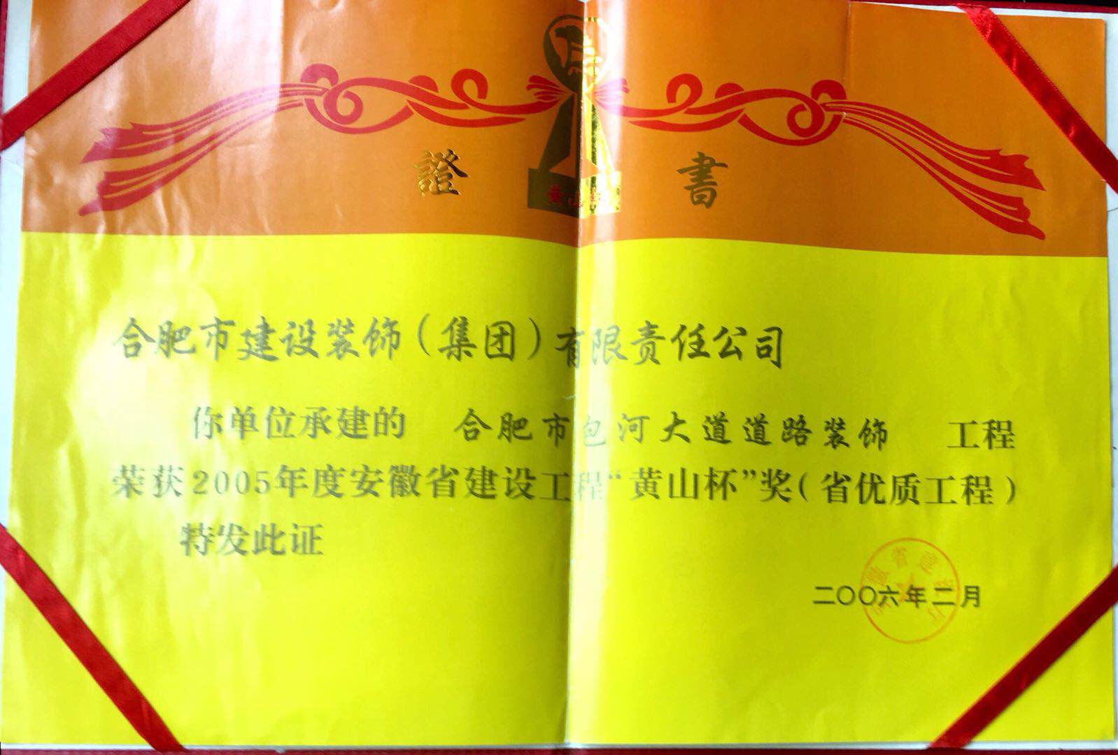 >2005年合肥市包河大道蹊径装饰工程黄山杯