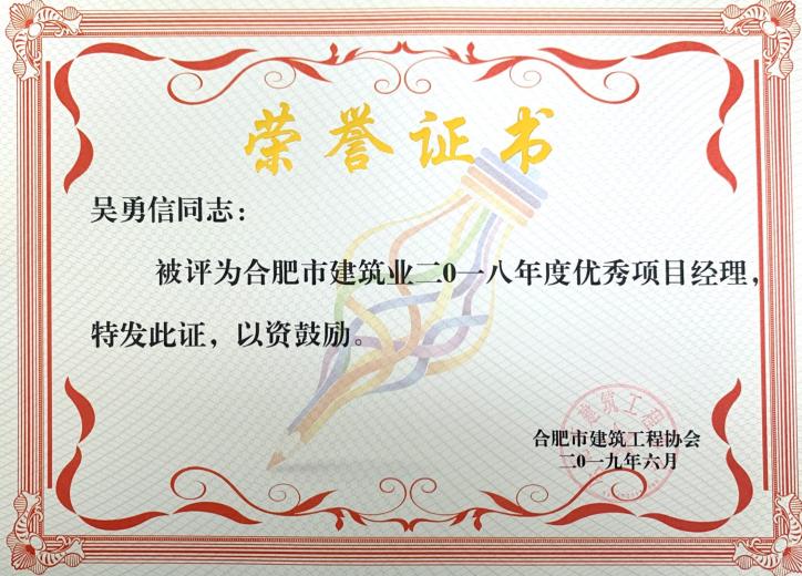 >合肥市修建业2018年度优异项目司理——吴勇信