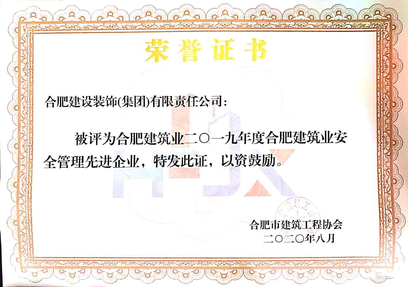 >2019年度合肥修建业清静治理先进企业