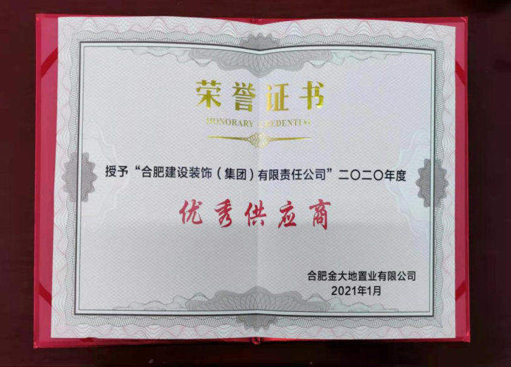 >合肥金大地置业有限公司2020年度“优异供应商”证书