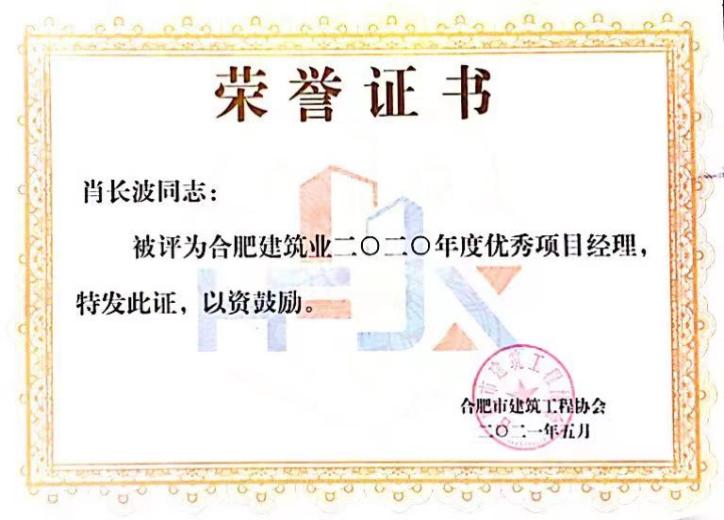 >2020年合肥修建业企业优异项目司理--肖长波