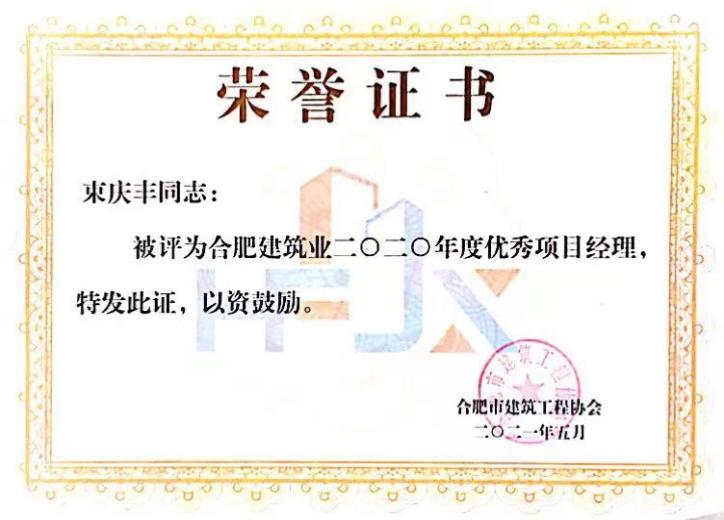 >2020年合肥修建业企业优异项目司理--束庆丰