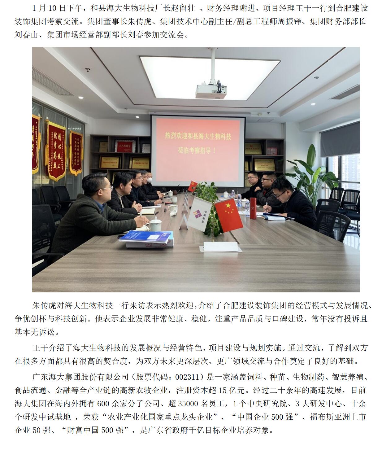 >海大生物科技到合肥建设装饰集团考察交流